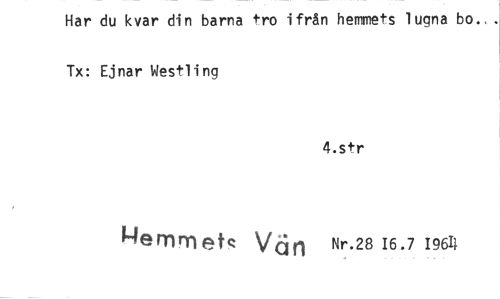 //// Har du kvar din barna tro ifrån hemmets lugna bo.,. Tx: Ejnar Westling //// 4.str //// 4ernMetc Vän Nr.28 16.7 1964 ////