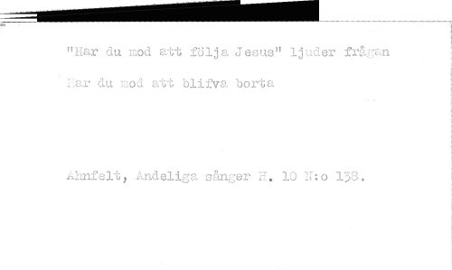 //// "Har du mod att följa Jesus" ljuder frkan Ilar du mod att blifva borta //// Ahnfelt, Andeliga sånger H. 10 N:o 138. ////