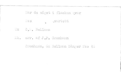 //// Har du något i flaskan var //// D:0 ,yartett //// 2x C.L. Bellman //// Lic. arr. af J.P. Cronhamn //// Cronhamn, 6a Bellman Så (er N:o 4ä ////