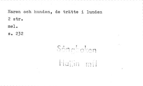 //// Haren och hunden, de trätte i lunden 2 str. //// mel. //// s. 232 ////