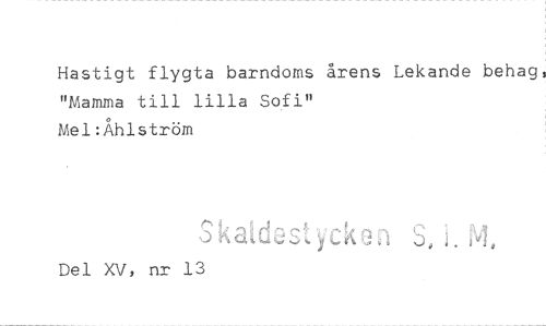 //// Hastigt flygta barndoms årens Lekande behag, "Mamma till lilla Sofi" //// Mel:Åhlström //// Ska. //// Del XV, nr 13 ////
