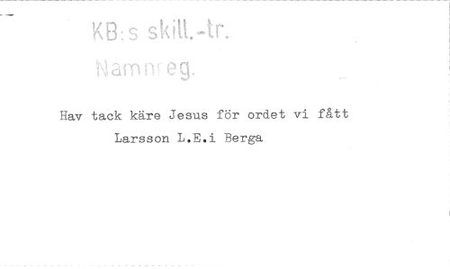 //// KB: s skitt.År.. //// Hav tack käre Jesus för ordet vi fått Larsson L.E.i Berga ////
