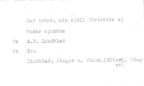 //// Håf tröst, min själ! Förtvivla ej //// Under sjukdom Tx A.F. Lindblad Mk D:o //// Lindblad, Sånger o. Visor.(Efterl. Sång- //// er) ////