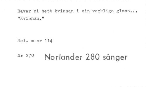 //// Haver ni sett kvinnan i sin verkliga glans... "Kvinnan." //// = nr 114 //// Nr 270 Norlander 280 sånger ////