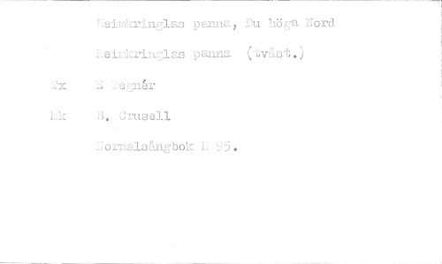 //// eirc.cringlas panna, Du hopaNord .eirkrinlas panna (tvåst.) //// 2x //// Lk B. Crusell //// Normalsångbok i 95. ////