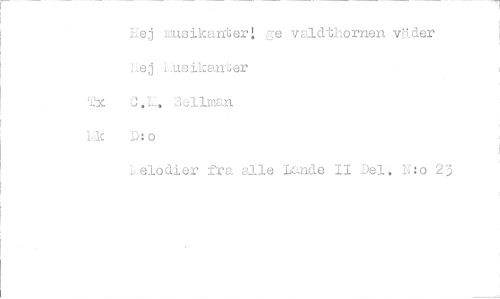 //// Hej rusikanter! ge valdthornen väder Hej Lusikanc,er //// Tx Bellman //// 1,1‹ D:o //// :,elodier fra alle Lande II Del, N:0 23 ////
