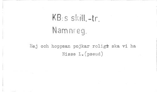 //// KB:s sLi11.-tr. //// Namnreg. //// Hej och hoppsan pojkar roligt ska vi ha //// Nisse L.(pseud) ////