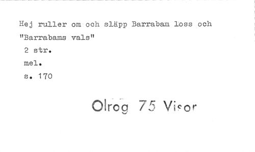 //// Hej ruller om och släpp Barrabara loss och "Barrabams vals" //// 2 str. //// rael. //// s. 170 //// Olrog 7 r Vicor ////