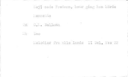 //// ej: sade Fredman, livar gång han hörde Anuett;o //// BeUman //// k D:o //// :Lelodier fra alle Lande II Del. N:o 22 ////