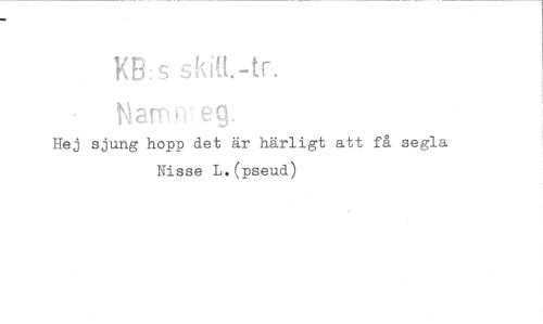//// KB:s skitt.-tr. //// Namry-eg. //// Hej sjung hopp det är härligt att få segla Nisse L.(pseud) ////