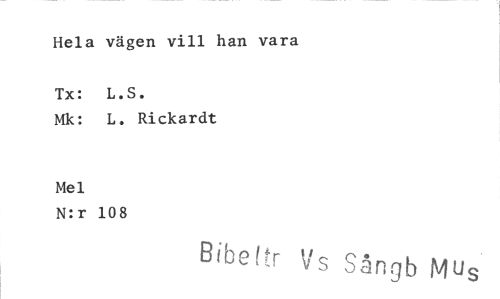 //// Hela vägen vill han vara //// Tx: L.S. //// Mk: L. Rickardt //// Mel //// N:r 108 //// Biberg Vs Sångb M ////