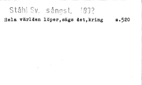 //// Ståh Sv. sånrst, f 39? //// Hela världen löper,eäge det,kring 9.520 ////