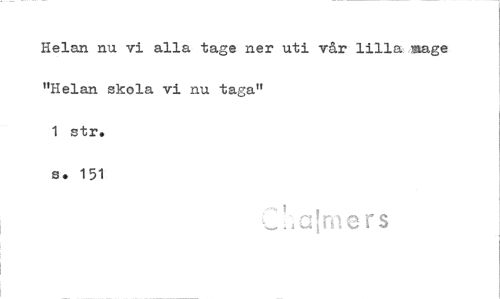 //// Helan nu vi alla tags ner uti vår lilla,mage "Helan skola vi nu taga" //// 1 str. //// s. 151 //// rs ////