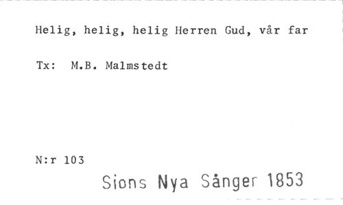 //// Helig, helig, helig Herren Gud, vår far Tx: M.B. Malmstedt //// N:r 103 //// Sions Nya Sånger 1853 ////