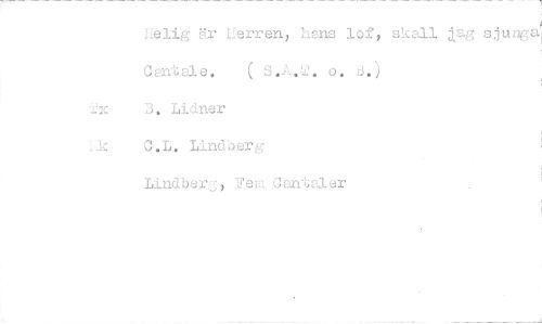 //// Helig Kr herren' hans lof, skall lag sjuAga. Cantale. ( 3•A•2. o. B.) //// J2x 3. Lidner //// C.L. Lindberg //// Lindberg, Fem jantaler ////