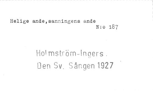 //// Helige ande,sanningens ande //// N:o 187 //// Ho!mströrn-Inaers //// Oen Sv. Sången 1927 ////