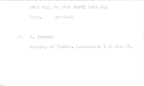 //// hell dig, du höga Nord: Hell dig Hymn. ,yartett //// Lk B. Orusell //// Samling af flerst. Landssange 1 Bd N:o 64. ////