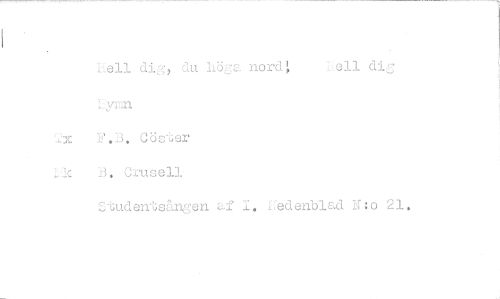 //// hell dig, du h'cia nord efl did //// F.B. Cöster //// Ic B. Crusell //// Studentsången af 1. i:edenblad N:0 21. ////