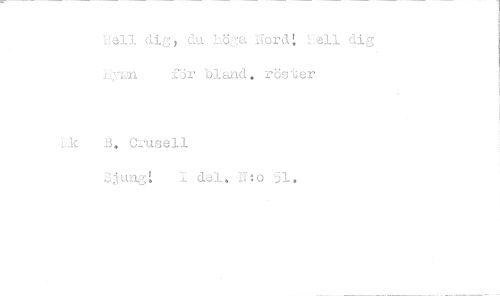 //// Hell dig, du Mga Nord'. tell dig //// för bland. rös-Ar //// 1.,k B. Crusell //// 3ung 1 del. LT:o 51. ////
