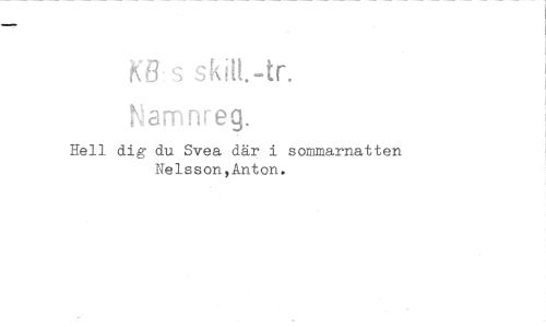 //// Ke s skill.-tr. //// Narnnreg. //// Hell dig du Svea där i sommarnatten Nelsson,Anton. ////