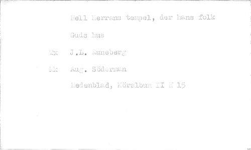 //// rell Herrans tempel, der hans folk Guds hus //// J.L. ..uneberg Lic Aug. SödorLum //// Ledenblad, Köralbu II U 15 ////