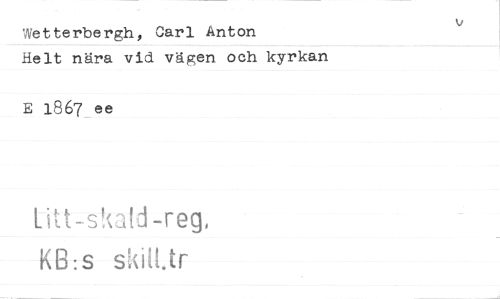 //// Wetterbergh, Carl Anton //// Helt nära vid vägen och kyrkan //// E 1867 ee //// titt-skald-reg, //// KB:s skäl tr ////