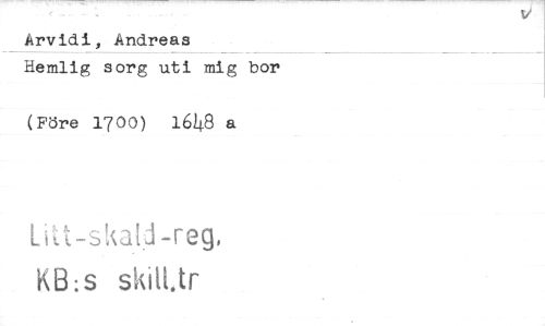 //// Arvid i, Andreas //// Hemlig sorg uti mig bor //// (Före 1700) 1648 a //// Litt-skat)-reg, //// KB:s skilt tr ////