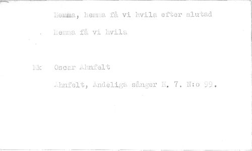 //// 'jemine, henna få vi hvila efter slutad hemma få vi hvila //// lik Oscar Alinfelt //// Lhnfelt, Andeliga sånger H. 7. Nio 59. ////
