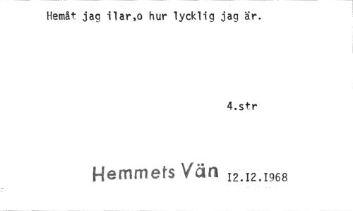 //// Hemåt jag ilar,o hur lycklig jag är. //// 4.str //// Hemmets Vän 12.12.1968 ////