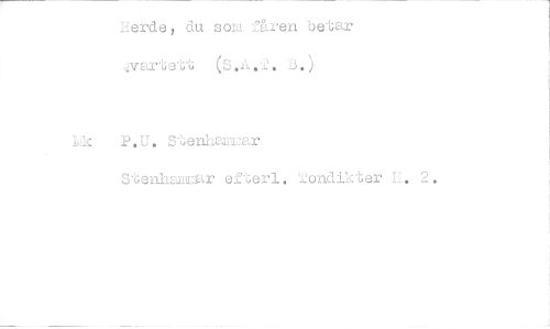 //// I.erde, du som fåren betar vartett (S.A.T. B.) //// kk P.U. Stenhaimar //// Stenlb2rxr efterl. Tondikter ////
