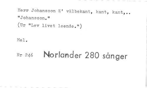//// Herr Johansson ä' välbekant, kant, kant". "Johansson." //// (Ur "Lev livet leende.") //// Mel. //// Nr 246 Norlander 280 sånger ////