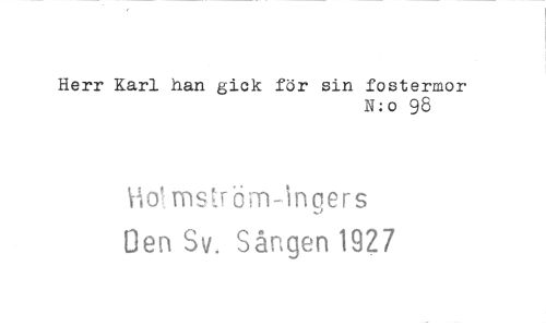 //// Herr Karl han gick för sin fostermor //// N:o 98 //// l'ioknsrörn-Inciers //// Oen Sv. Sången 1927 ////