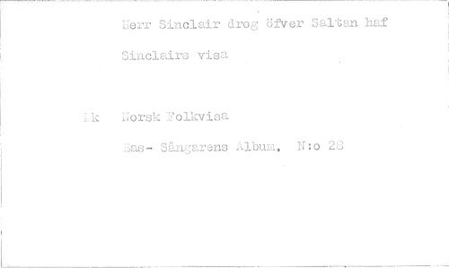 //// Herr Sinclair drog öfver Saltan haf Sinclairs visa //// Lk. Norsk Folkvisa //// Jas- Sängarens Album. N:o 2U ////