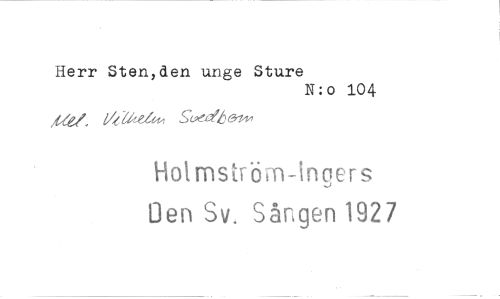 //// Herr Sten,den unge Sture //// N:o 104 //// Yeraf-e4f,, //// Holmström-Ingers //// Den Sv. Sången 1927 ////