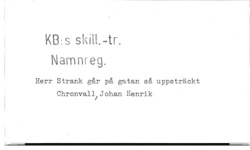 //// KB:s //// Namnreg. //// Herr Strank går på gatan så uppsträckt Chronvall Johan Henrik ////