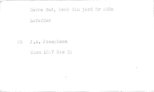 //// Eerre Gud, hvad din jord är skön //// hofoffer //// J .A. Josephson non 18,37 N:o 39 ////