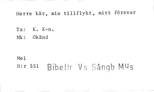 //// Herre kär, min tillflykt, mitt försvar //// Tx: K. K-n. Mk: Okänd //// Mel //// N:r 551 Bibel r \Is Sånqb Mus ////