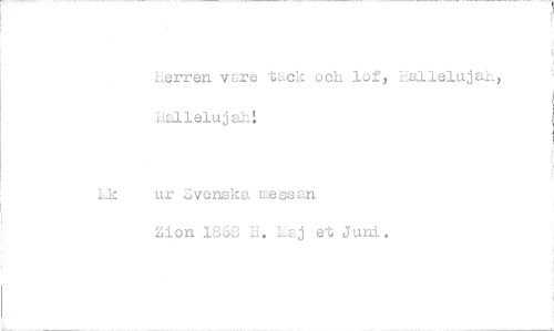 //// herren vsre tack och lof, hallelujah, //// 111c ur Svenska mesean //// Zion 18h H. haj et Juni. ////