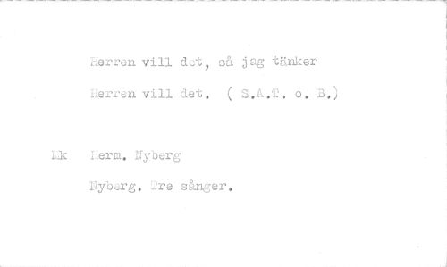 //// herren vill det, så jag tänker Herren vill det. ( S.A.T. 0. B.) //// hk Ierm. Nyberg Nyberg. 2re sånger. ////