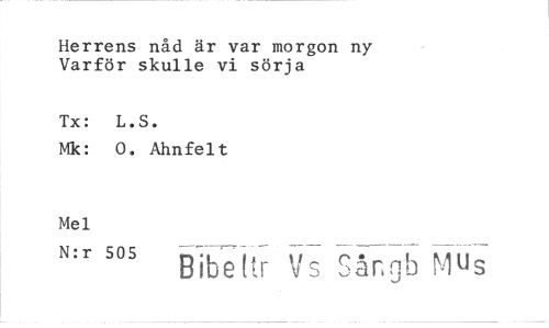 //// Herrens nåd är var morgon ny Varför skulle vi sörja //// Tx: L.S. //// Mk: 0. Ahnfelt //// Mel //// N:r SOS Bibelgir Vs Sångb Mus ////