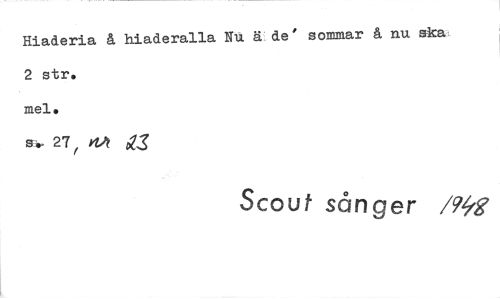 //// Hiaderia å hiaderalla Ni Wde' sommar å nu ska 2 str. //// mel. //// s. 271 Kit ,1,3 //// Scout sånger /%" ////
