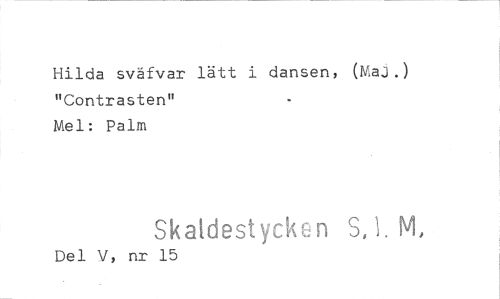 //// Hilda sväfvar lätt i dansen, (Maj.) "Contrasten" //// Mel: Palm //// Skaldestychn Si. NI, //// Del V, nr 15 ////