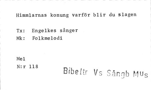 //// Himmlarnas konung varför blir du slagen //// Tx: Engelkes sånger Mk: Folkmelodi //// Mel //// N:r 118 Bibel r Vs Så-g!) Mus ////