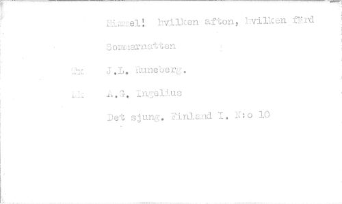 //// Bi I:et 11._ hst,i lic en afton, 17krilk en fdrd Sommar:natten //// 97cJ.L. Runeberg. //// G, Il gelius //// Det sjung. 7,?.in1and I. N: o 10 ////