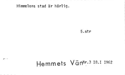 //// Himmelens stad är härlig. //// 5.str //// Hemmets Vän Nr.3 18.1 1962 ////