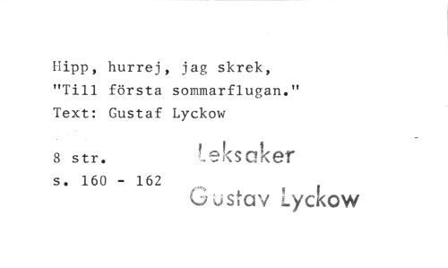 //// Hipp, hurrej, jag skrek, "Till första sommarflugan." Text: Gustaf Lyckow //// 8 str. eks sker //// s. 160 - 162 Gustav Lyckow ////
