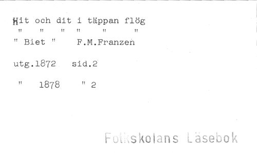 //// Hit och dit i täppan flög //// tt tt It tt tt tt //// " Biet tt F.M.Franzen //// utg.1872 sid.2 //// tt 1878 " 2 //// r» sko'ans Lasebok ////