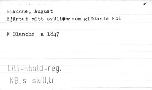 //// Blanche , August //// Hjärtat mitt svänger som glödande kol //// F Blanche a 18/47 //// Litt-skald-reg, //// KB:s skilt.tr ////