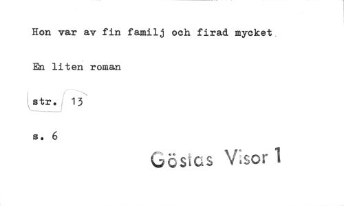 //// Hon var av fin familj och firad mycket En liten roman //// str. 13 //// s. 6 //// Gös es Vor ////
