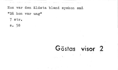 //// Hon var den äldsta bland syskon små "Då hon var ung" //// 7 str. //// s. 58 //// Göstas visor 2 ////
